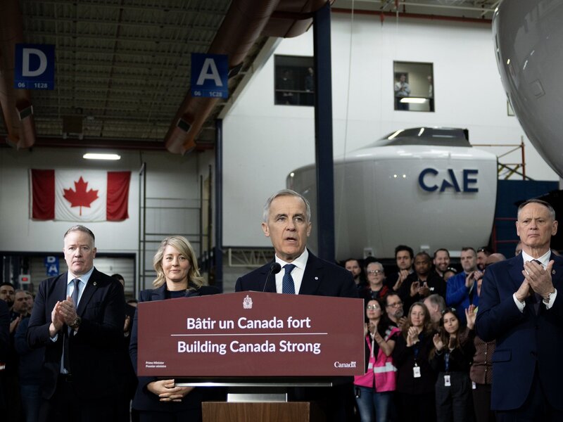 Photo: Prime Minister Mark Carney speaks about DIS at CAE Inc. in Feb. 2026. Source: @MarkJCarney on X.