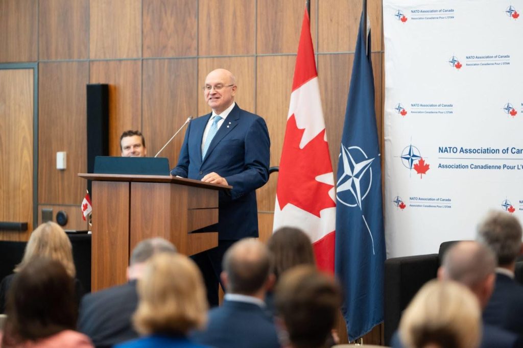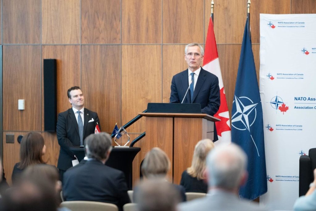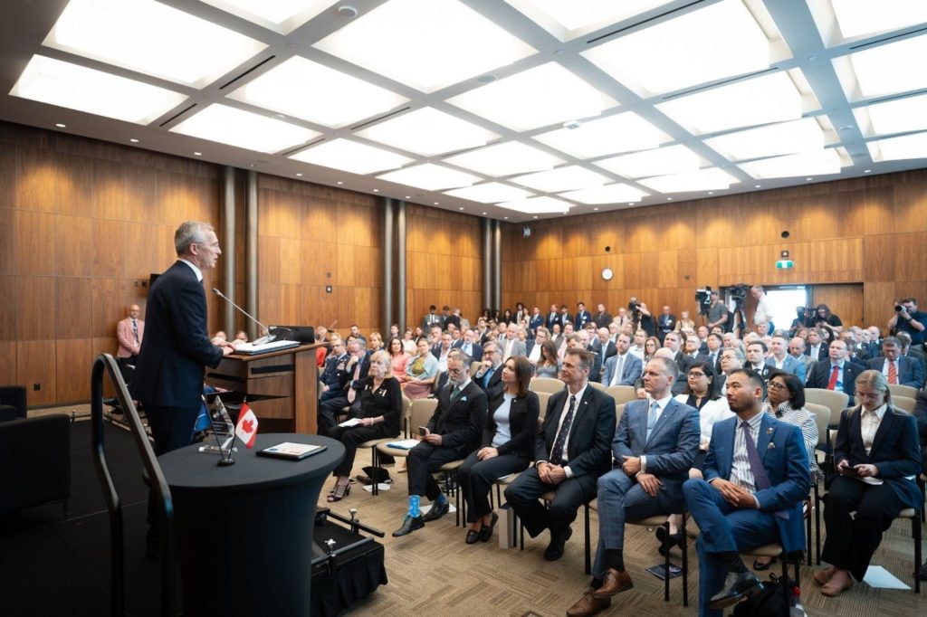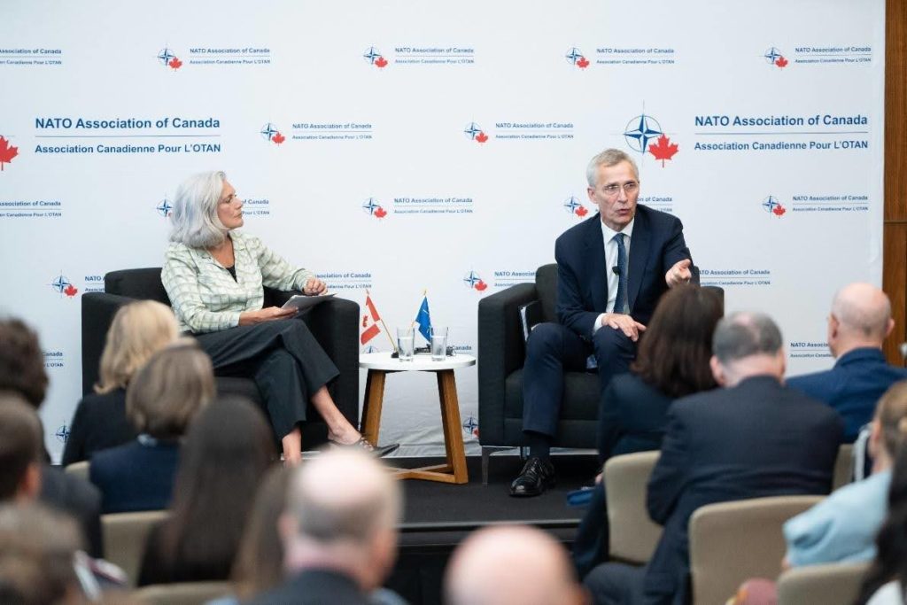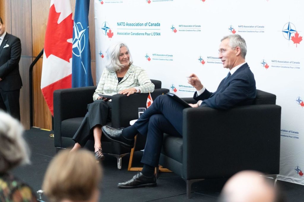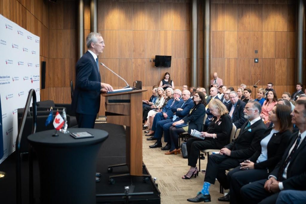 Held in Ottawa, the room was full of special guests, including Canada’s former Prime Minister Rt. Hon. Joe Clark, Julie Dzerowicz, Chair of the Canadian NATO Parliamentary Association, members of Canadian Senate and Members of Parliament, various NATO country Ambassadors, different business executives, Canadian military personnel, as well as directors and members of the NATO Association of Canada. As part of NATO’s 75th anniversary celebrations, the program included a speech by the Secretary-General and a fireside chat with Lisa LaFlamme.