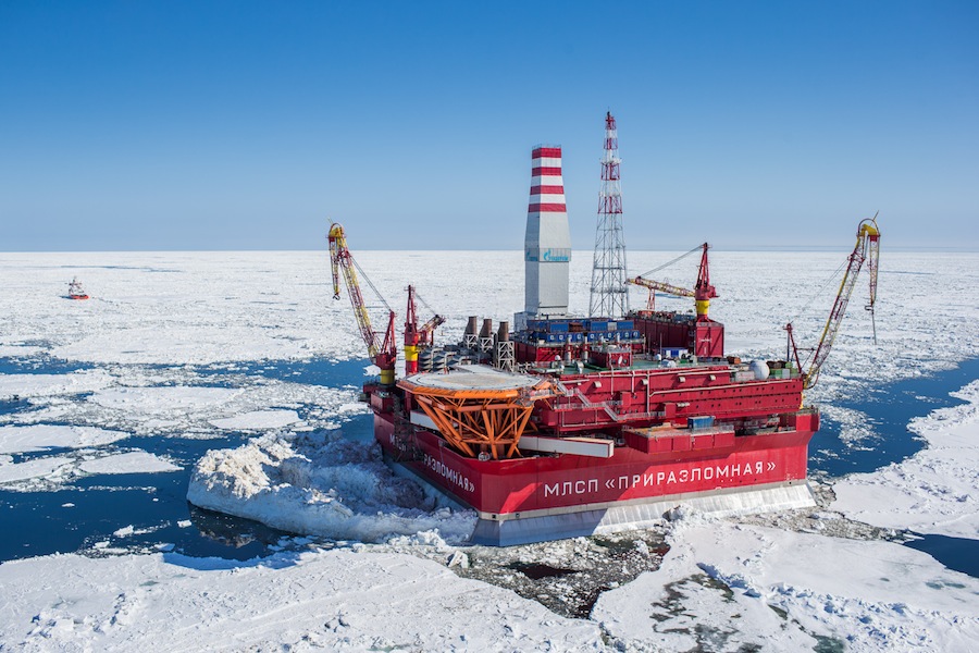Photo: A Russian oil rig in the Pechora Sea (2013), by Krichevsky via Wikimedia Commons. Licensed under CC BY-SA 4.0.