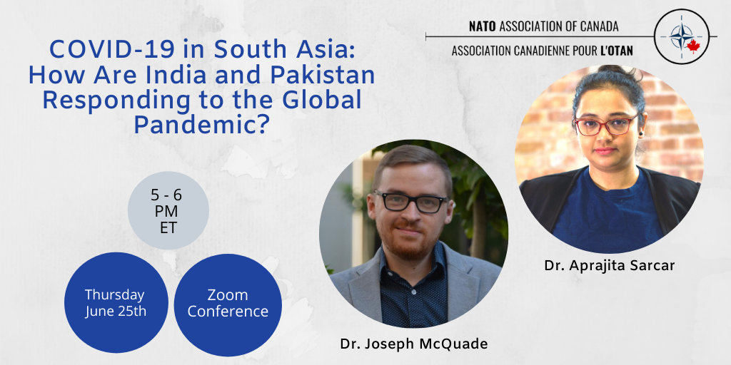 On June 25, 2020, the NATO Association of Canada was proud to host a moderated discussion with the NATO Association’s Editor-in-Chief Dr. Joseph McQuade and Dr. Aprajita Sarcar. Dr. Aprajita spoke about India and Pakistan’s response to COVID-19.